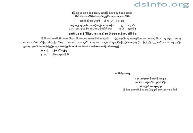 အမိန့်အမှတ်၊ ၆၇ / ၂၀၂၁