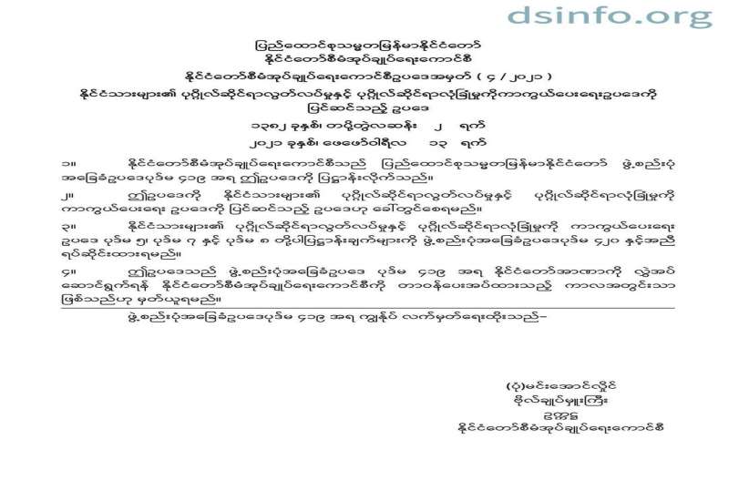 နိုင်ငံတော်စီမံအုပ်ချုပ်ရေးကောင်စီဥပဒေအမှတ် (