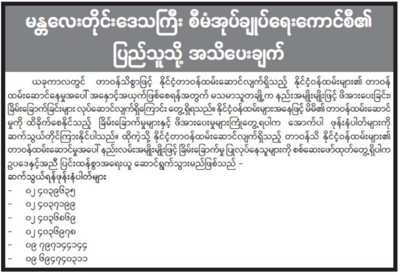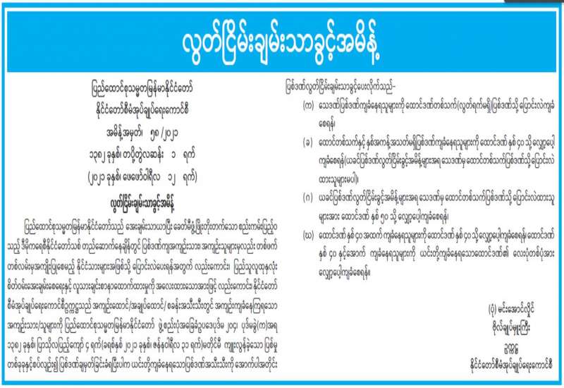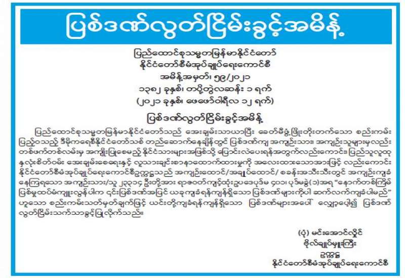 နိုင်ငံတော်စီမံအုပ်ချုပ်ရေးကောင်စီ၏ ပြည်သူသို့အသိပေးချက်