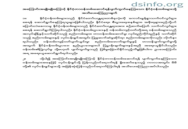 အကြောင်းအမျိုးမျိုးကြောင့် နိုင်ငံ့တာဝန်ထမ်းဆောင်ရန်ပျက်ကွက်နေကြသော နိုင်ငံ့ဝန်ထမ်းများသို့ အသိပေးကြေညာချက်