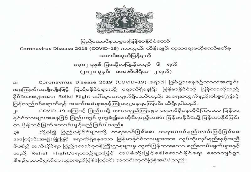 ပြည်ထောင်စုသမ္မတမြန်မာနိုင်ငံတော် တပ်မတော်ကာကွယ်ရေးဦးစီးချုပ်ရုံး အမိန့်အမှတ် ( ၈ / ၂၀၂၁) ၁၃၈၂ ခုနှစ်၊ ပြာသိုလပြည့်ကျော် ၅ ရက် ၂၀၂၁ ခုနှစ် ဖေဖော်ဝါရီလ ၁ ရက် ပြည်ထောင်စုရာထူးဝန်အဖွဲ့ဥက္ကဋ္ဌ ခန့်အပ်တာဝန်ပေးခြင်း