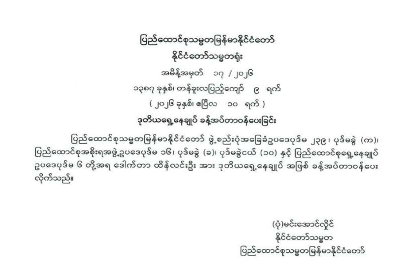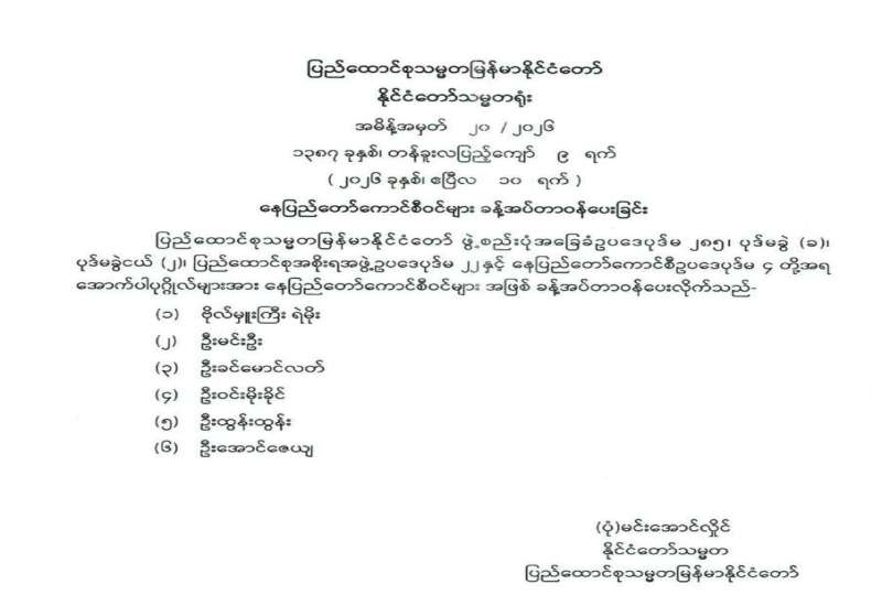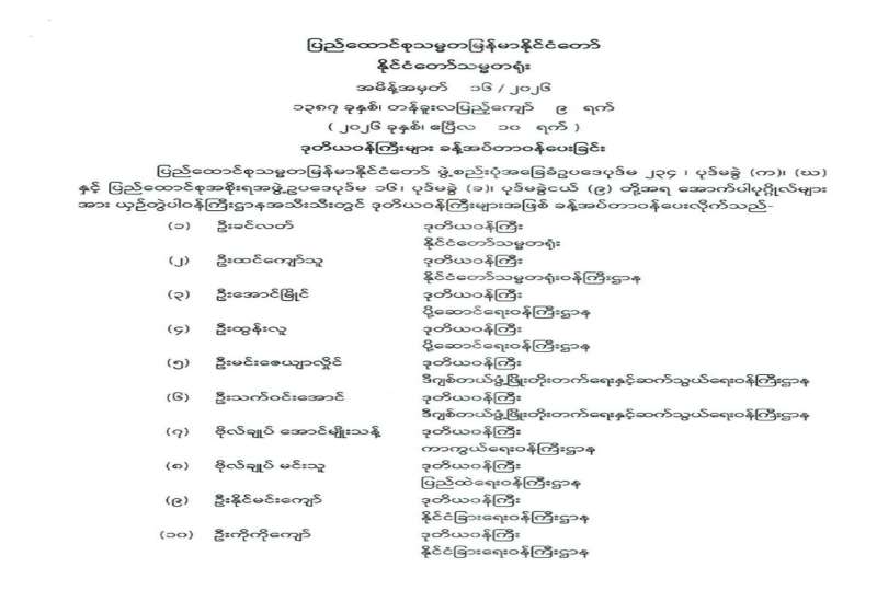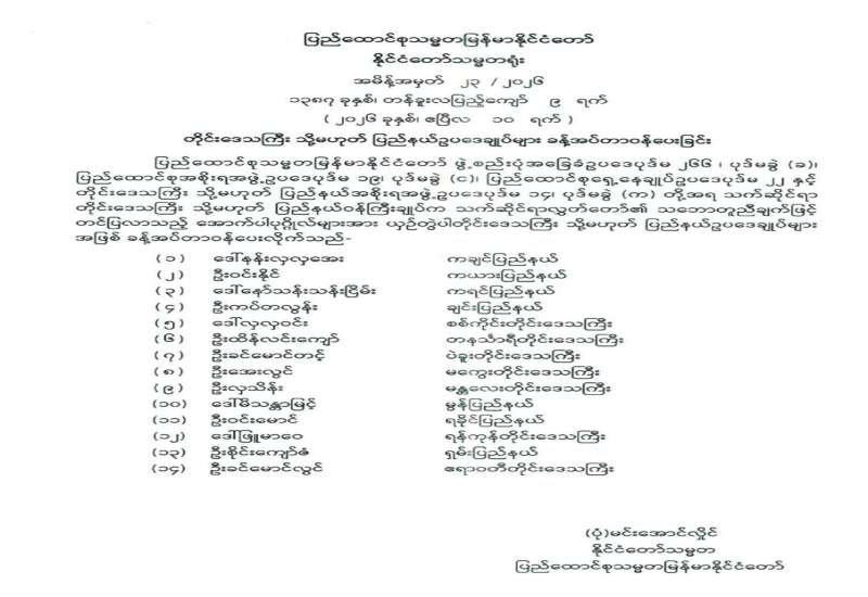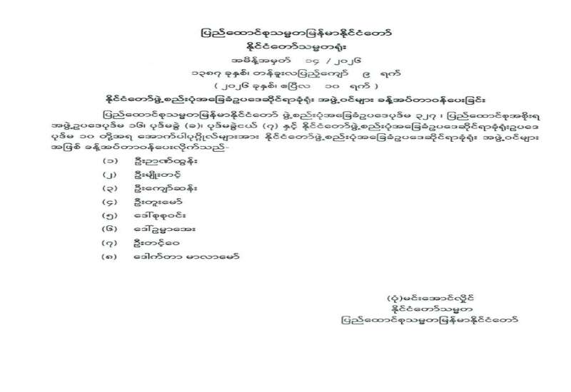 ပြည်ထောင်စုရွေးကောက်ပွဲကော်မရှင် အဖွဲ့ဝင်များ ခန့်အပ်တာဝန်ပေးခြင်း