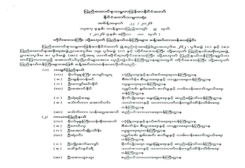 နေပြည်တော်ကောင်စီဝင်များ ခန့်အပ်တာဝန်ပေးခြင်း