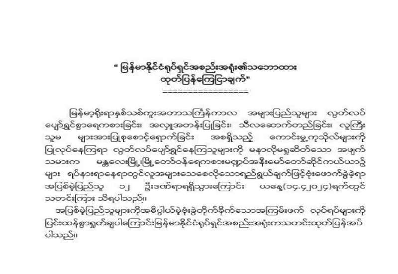 မြန်မာနိုင်ငံ ပန်းချီပန်းပုအစည်းအရုံး (ဗဟို) သဘောထားထုတ်ပြန်ကြေညာချက်