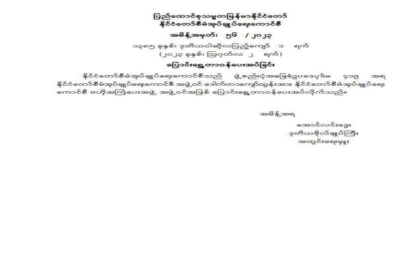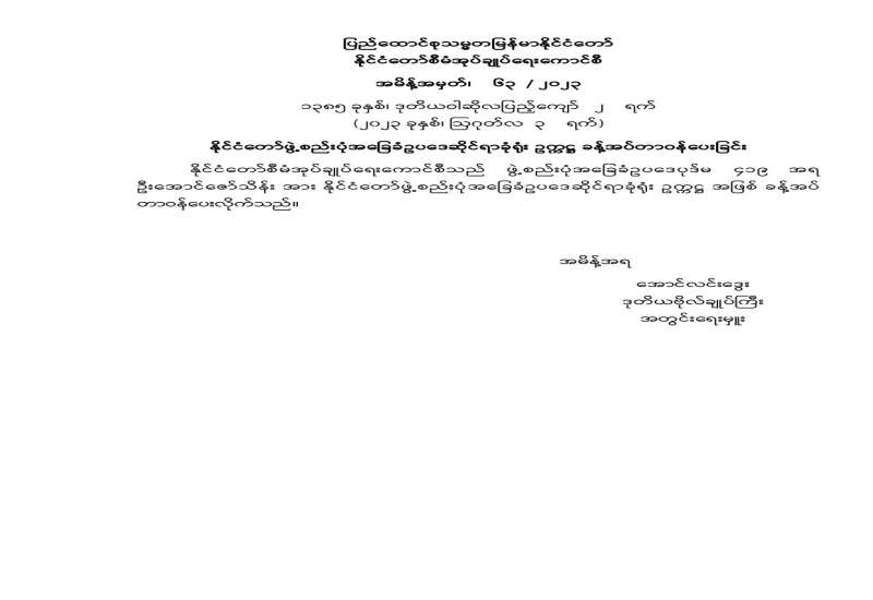 ပြည်ထောင်စုသမ္မတမြန်မာနိုင်ငံတော် နိုင်ငံတော်စီမံအုပ်ချုပ်ရေးကောင်စီ အမိန့်အမှတ်၊ ၆၄ / ၂၀၂၃ ၁၃၈၅ ခုနှစ်၊ ဒုတိယဝါဆိုလပြည့်ကျော် ၂ ရက် (၂၀၂၃ ခုနှစ်၊ ဩဂုတ်လ ၃ ရက်) ပြည်ထောင်စုစာရင်းစစ်ချုပ် ခန့်အပ်တာဝန်ပေးခြင်း