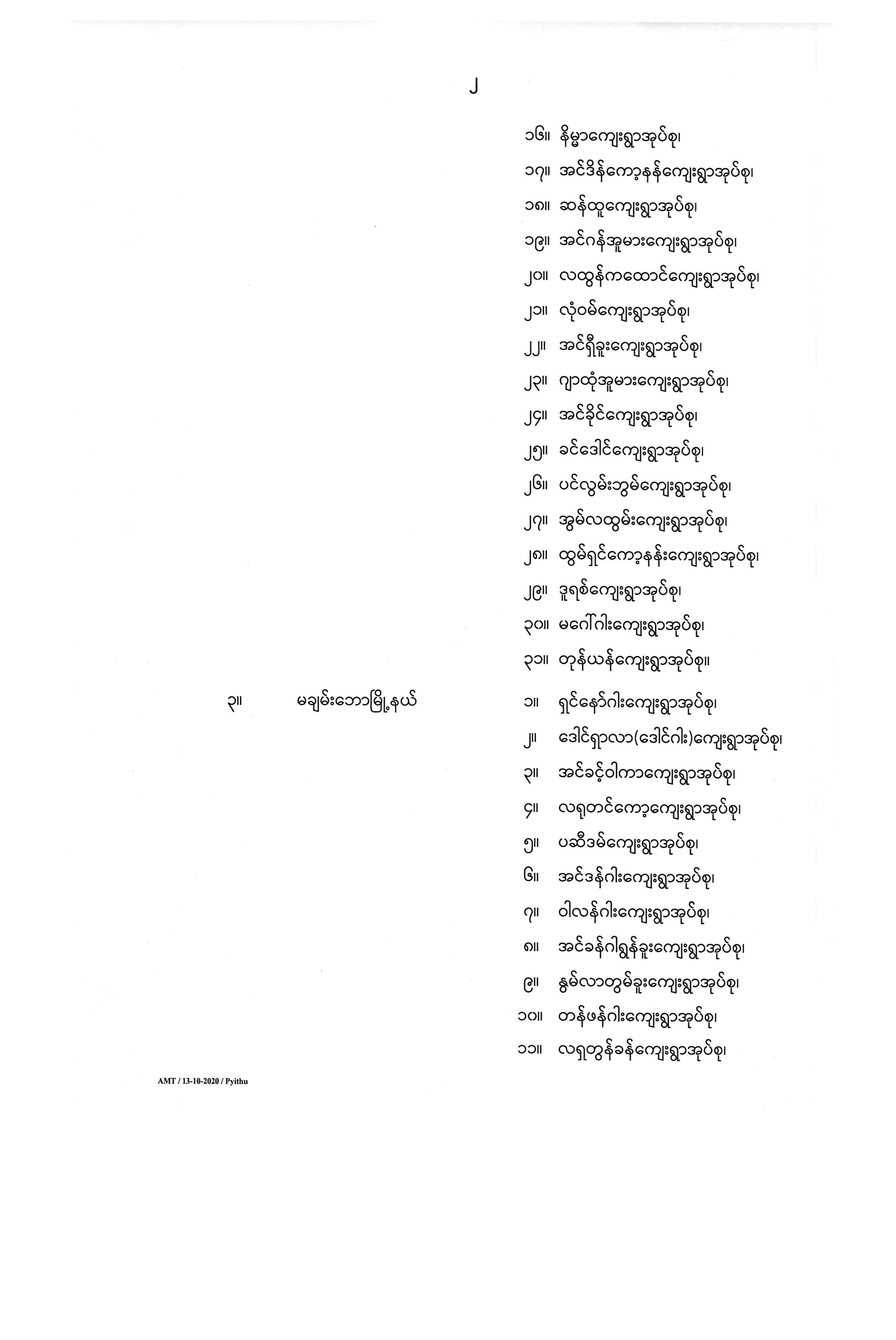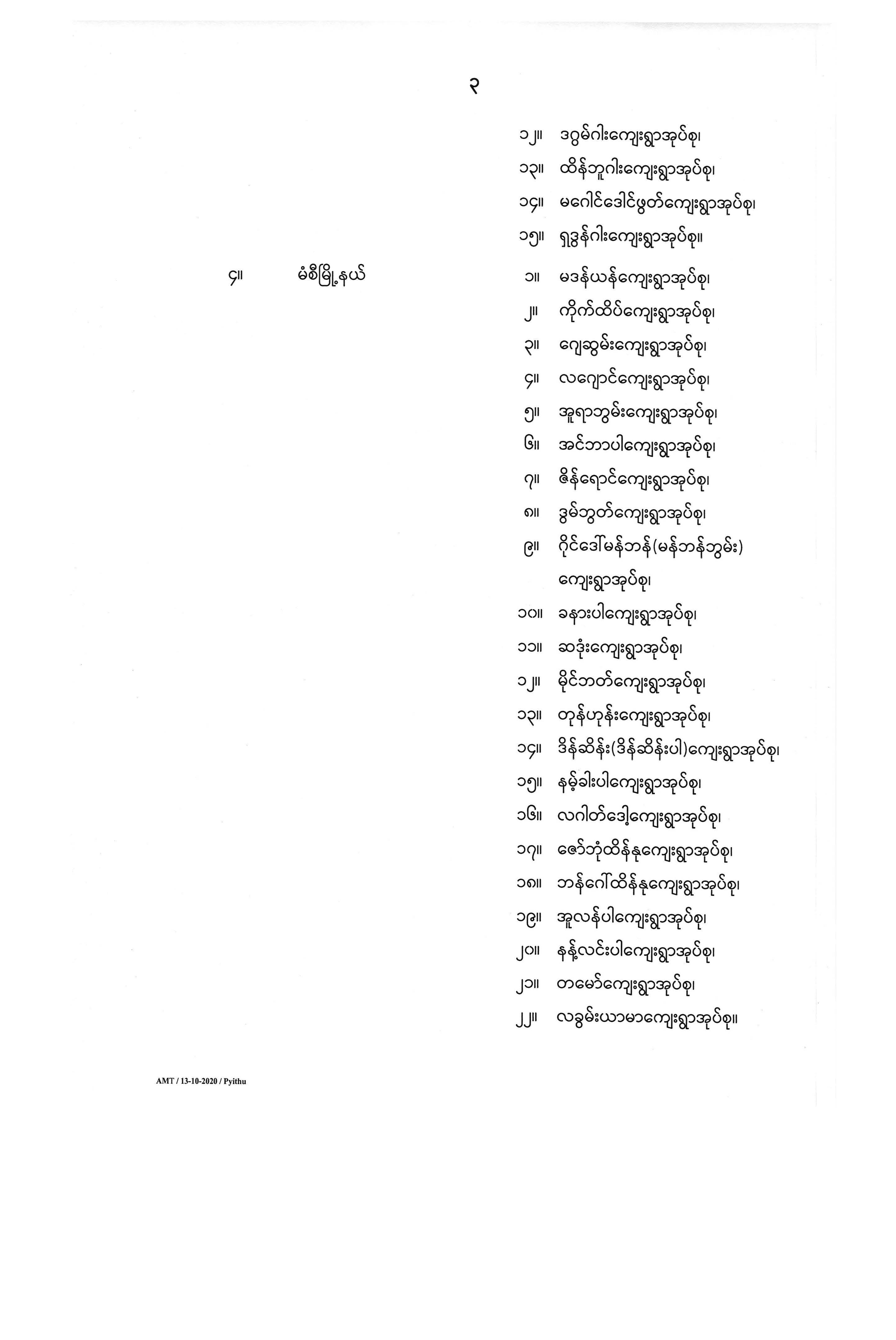 ကြေညာချက်အမှတ် ( ၁၉၂ / ၂၀၂၀)