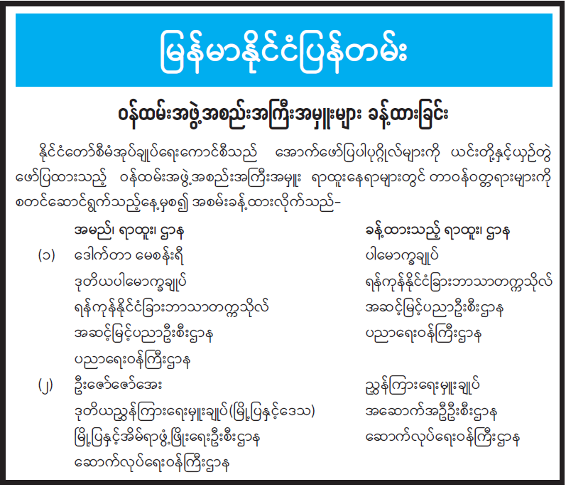 ဝန်ကြီးဌာန ကြေညာချက်များ