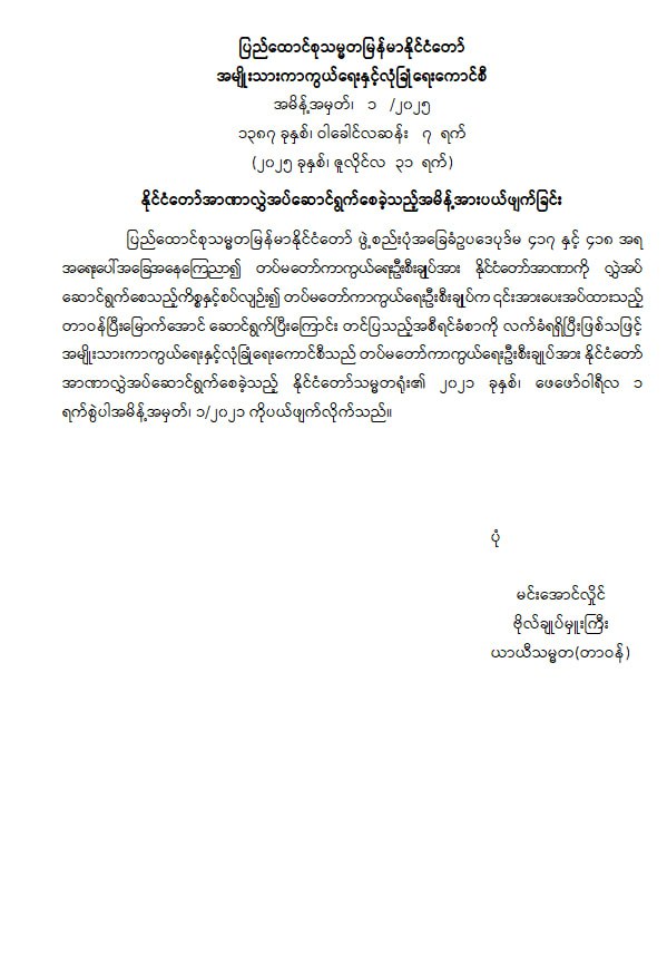 ဝန်ကြီးဌာန ကြေညာချက်များ