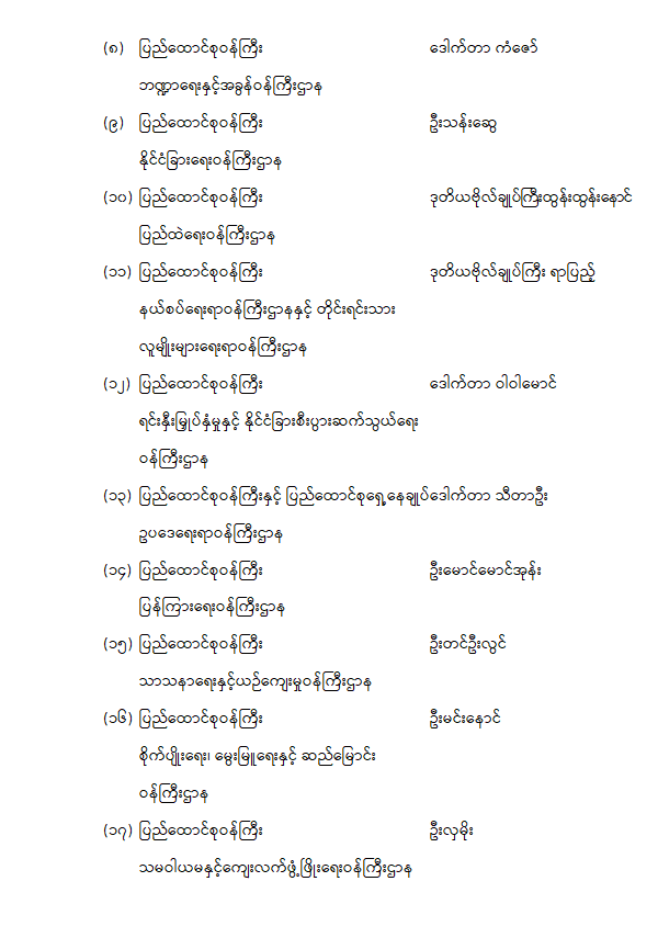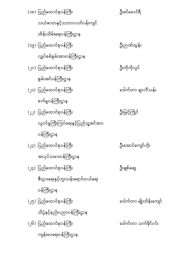 ဝန်ကြီးဌာန ကြေညာချက်များ