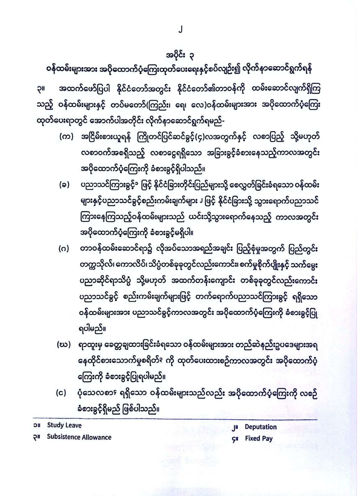 နိုင်ငံတော်အတွင်း နိုင်ငံတော်၏တာဝန်ကို ထမ်းဆောင်လျက်ရှိကြသည့် နိုင်ငံ့ဝန်ထမ်းများနှင့် အငြိမ်းစားဝန်ထမ်းများအတွက် အပိုထောက်ပံ့ကြေး ထပ်မံခံစားခွင့်ပြုခြင်း 09/30/2025