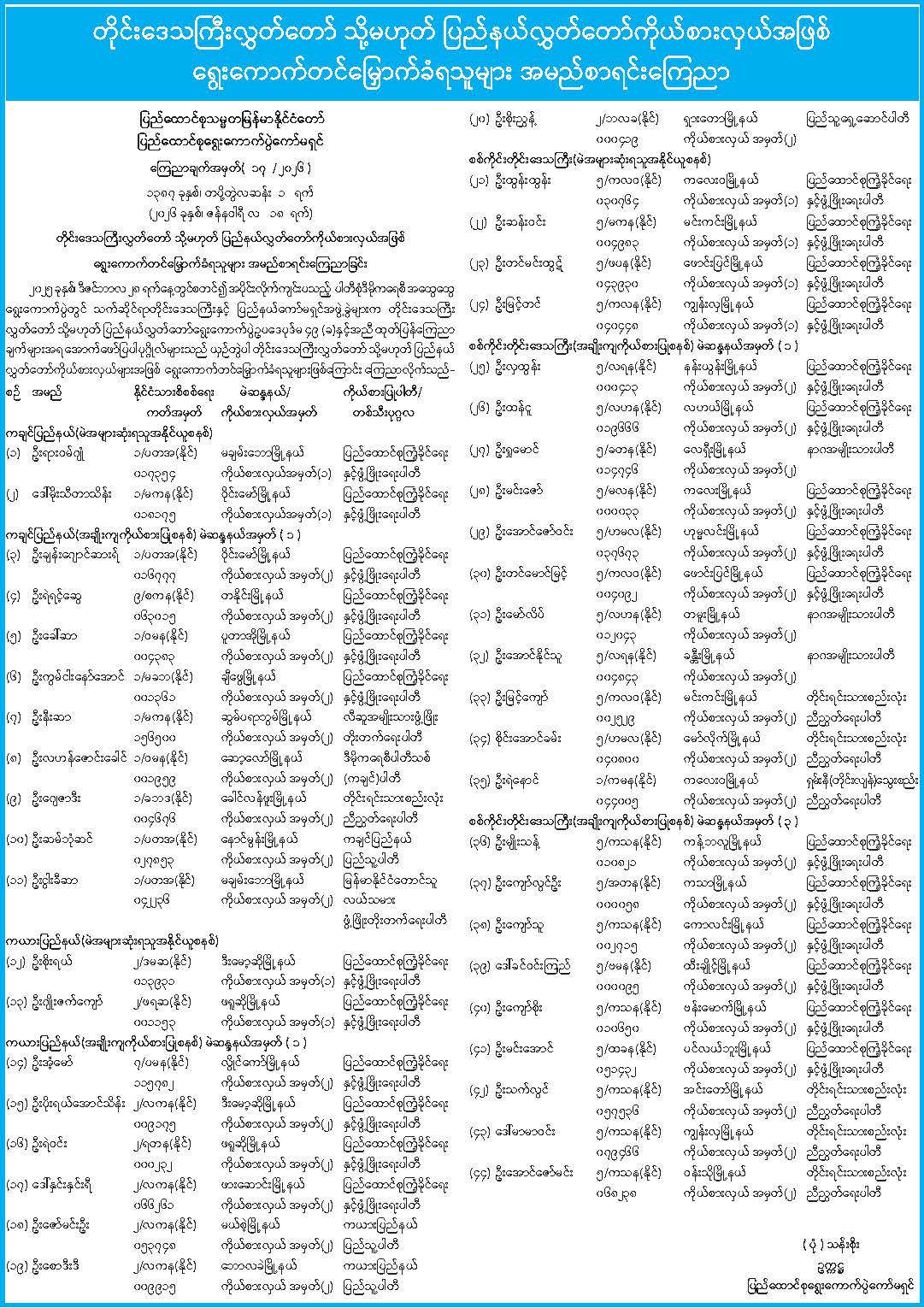 တိုင်းဒေသကြီးလွှတ်တော် သို့မဟုတ် ပြည်နယ်လွှတ်တော်ကိုယ်စားလှယ်အဖြစ် ရွေးကောက်တင်မြှောက်ခံရသူများ အမည်စာရင်းကြေညာ