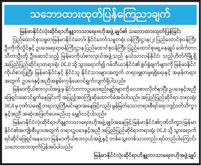 နိုင်ငံတော်အစိုးရ၏ ကြေညာချက်များ