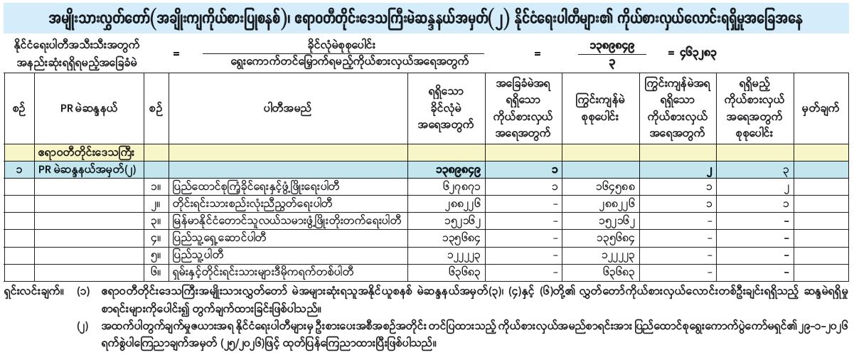 အမျိုးသားလွှတ်တော် (အချိုးကျကိုယ်စားပြုစနစ်)၊ ဧရာဝတီတိုင်းဒေသကြီးမဲဆန္ဒနယ်အမှတ် (၂) နိုင်ငံရေးပါတီများ၏ ကိုယ်စားလှယ်လောင်းရရှိမှုအခြေအနေ 01/31/2026