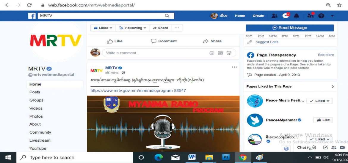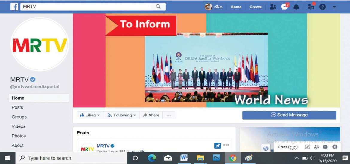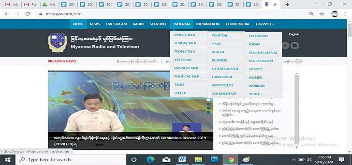 ပြန်ကြားရေးဝန်ကြီးဌာန၏ ကွပ်ကဲမှုဖြင့် အွန်လိုင်းပလက်ဖောင်းများမှတစ်ဆင့် ဒစ်ဂျစ်တယ် မီဒီယာကို သတင်းဌာန အသီးသီးက အကောင်အထည်ဖော် လျက်ရှိရာ ခိုင်မာမှန်ကန်၍ ဘက်မလိုက်မျှတသည့် သတင်းများ၊ ပညာပေးအစီအစဉ်များနှင့် သုတရသများစွာကို အွန်လိုင်းမှတစ်ဆင့် အသုံးပြုသူများထံ အရောက်တင်ဆက်နေပြီ ဖြစ်ပါကြောင်း။ ။