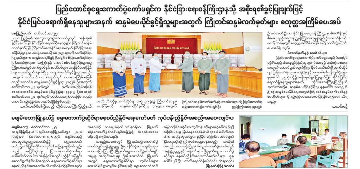 ထို့ပြင် ကိုဗစ်-၁၉ ရောဂါ ကာကွယ်၊ ထိန်းချုပ်၊ ကုသရေးအမျိုးသားအဆင့် ဗဟို ကော်မတီမှထုတ်ပြန်ထားသည့် ကျန်းမာရေးနှင့် အညီ ဆန္ဒမဲပေးနိုင်စေရန် အသိပေးချက်များကို သတင်းများ၊ ထုတ်ပြန်ချက်များ၊ တွေ့ဆုံမေးမြန်းခန်းများအဖြစ် ရွေးကောက်ပွဲ မတိုင်မီ ရက်ပေါင်း ၁၀၀ အတွင်း ဖော်ပြပေးနိုင်ခဲ့ပါသည်။ ထို့ပြင် ရွေးကောက်ပွဲအတွက် ကျန်းမာရေးပစ္စည်းများ ရောက်ရှိ ဖြန့်ဖြူးနေမှု၊ နိုင်ငံသားဆိုင်ရာ အသိပညာနှင့် ဆန္ဒမဲ ဆိုင်ရာ အသိပညာပေးမှုများစွာကို ဖော်ပြ နိုင်ခဲ့ခြင်း ဖြစ်ပါသည်။