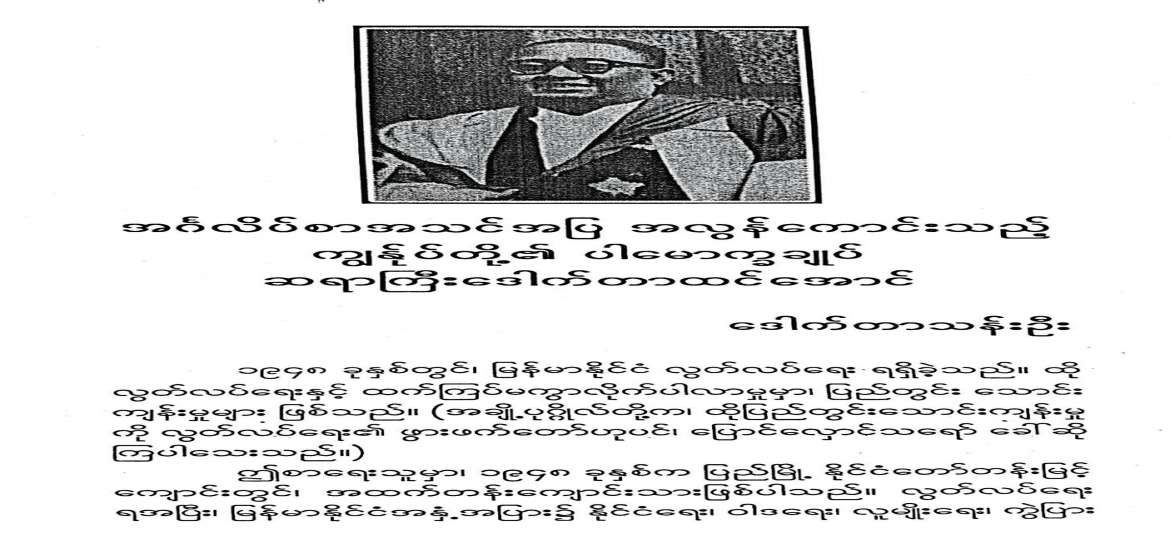 စာရေးသူတွေ့ချင်နေသော ပါမောက္ခချုပ် ဆရာကြီး သည် ယခုအခါ အင်္ဂလိပ်စာပါမောက္ခအဖြစ် ဥပစာဝိဇ္ဇာ၊ အင်္ဂလိပ်စာ အတန်းသို့ ဝင်ရောက်သင်ကြားခြင်းဖြစ်သဖြင့် ဤစာရေးသူအဖို့ ကြုံတောင့်ကြုံခဲ၊ ဆုံတောင့်ဆုံခဲရသော အခါအခွင့်ကို ရရှိသွားခြင်း ဖြစ်ပါသည်။ အလွန် ဝမ်းမြောက်ဝမ်းသာဖြစ်နေရပါသည်။ ကောင်းစွာ မှတ်မိပါ သေးသည်။