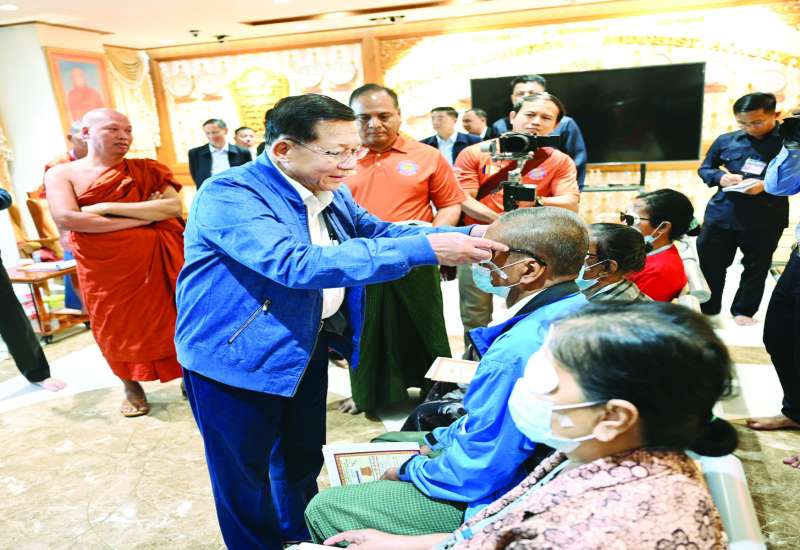 ပြည်ထောင်စုသမ္မတမြန်မာနိုင်ငံတော် ယာယီသမ္မတ နိုင်ငံတော်လုံခြုံရေးနှင့်အေးချမ်းသာယာရေးကော်မရှင်ဥက္ကဋ္ဌ ဗိုလ်ချုပ်မှူးကြီး မင်းအောင်လှိုင်သည် ကော်မရှင်အဖွဲ့ဝင် နိုင်ငံတော်ဝန်ကြီးချုပ် ဦးညိုစော၊ ကော်မရှင်အတွင်းရေးမှူး ဗိုလ်ချုပ်ကြီး ရဲဝင်းဦးနှင့် ခရီးစဉ်တွင် လိုက်ပါလာသည့် အဖွဲ့ဝင်များ၊ ရန်ကုန်တိုင်းဒေသကြီးဝန်ကြီးချုပ်၊ ရန်ကုန်တိုင်းစစ်ဌာနချုပ်တိုင်းမှူး၊ ရန်ကုန်မြို့တော်ဝန်နှင့် တာဝန်ရှိသူများ လိုက်ပါ၍ ယနေ့နံနက်ပိုင်းတွင် ရန်ကုန်တိုင်းဒေသကြီး၊ မြောက်ဒဂုံမြို့နယ်ရှိသီတဂူအပြည်ပြည်ဆိုင်ရာသာသနာပြုအဖွဲ့ သီတဂူကမ္ဘာ့ဗုဒ္ဓတက္ကသိုလ်၊ သီတဂူစက္ခုဒါနဆေးရုံသို့ သွားရောက်၍ သီတဂူကမ္ဘာ့ဗုဒ္ဓတက္ကသိုလ်များ၏ နိုင်ငံတော်ဩဝါဒါစရိယ သောဠသမ ရွှေကျင်သာသနာပိုင်ဆရာတော်၊ သီတဂူကမ္ဘာ့ဗုဒ္ဓတက္ကသိုလ်များ၏ အဓိပတိ အဘိဓဇမဟာရဋ္ဌဂုရု အဘိဓဇအဂ္ဂမဟာသဒ္ဓမ္မဇောတိက ဒေါက်တာ ဘဒ္ဒန္တဉာဏိဿရအား မြော်ကြည်ညိုသည်။