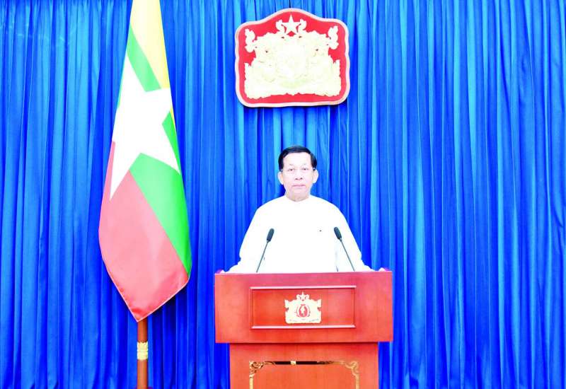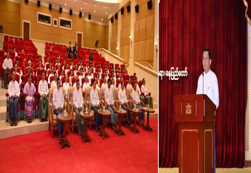 မြန်မာနိုင်ငံသတင်းမီဒီယာကောင်စီဝင်များ ကတိသစ္စာပြုခြင်းအခမ်းအနားကို ယနေ့မွန်းလွဲပိုင်းတွင် နေပြည်တော်ရှိ နိုင်ငံတော်စီမံအုပ်ချုပ်ရေးကောင်စီဥက္ကဋ္ဌရုံး သဘင်ဆောင်၌ကျင်းပပြုလုပ်ရာ နိုင်ငံတော်စီမံအုပ်ချုပ်ရေးကောင်စီဥက္ကဋ္ဌ နိုင်ငံတော်ဝန်ကြီးချုပ် ဗိုလ်ချုပ်မှူးကြီးမင်းအောင်လှိုင် တက်ရောက်အမှာစကားပြောကြားသည်။