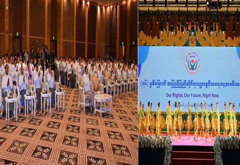 (၇၆) နှစ်မြောက် အပြည်ပြည်ဆိုင်ရာ လူ့အခွင့်အရေးနေ့အခမ်းအနားကို ယနေ့နံနက်ပိုင်းတွင် နေပြည်တော်ရှိ မြန်မာအပြည်ပြည်ဆိုင်ရာ ကွန်ဗင်းရှင်းဗဟို ဌာန-၁ ၌ ကျင်းပပြုလုပ်ရာ နိုင်ငံတော်စီမံအုပ်ချုပ်ရေးကောင်စီဥက္ကဋ္ဌ နိုင်ငံတော်ဝန်ကြီးချုပ် ဗိုလ်ချုပ်မှူးကြီးမင်းအောင်လှိုင် တက်ရောက်အမှာစကား ပြောကြားသည်။