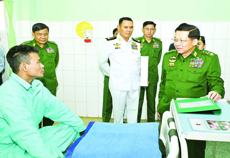 နိုင်ငံတော်စီမံအုပ်ချုပ်ရေးကောင်စီဥက္ကဋ္ဌ တပ်မတော်ကာကွယ်ရေးဦးစီးချုပ် ဗိုလ်ချုပ်မှူးကြီး မင်းအောင်လှိုင်သည် ဇနီး ဒေါ်ကြူကြူလှ၊ ညှိနှိုင်းကွပ်ကဲရေးမှူး (ကြည်း၊ ရေ၊ လေ) ဗိုလ်ချုပ်ကြီး မောင်မောင်အေးနှင့်ဇနီး၊ ကာကွယ်ရေးဦးစီးချုပ်ရုံးမှ အဆင့်မြင့်တပ်မတော်အရာရှိကြီးများနှင့် ဇနီးများလိုက်ပါ၍ ယနေ့နံနက်ပိုင်းတွင် ပြင်ဦးလွင်မြို့ရှိ နယ်မြေခံတပ်မတော်ဆေးရုံ၌ တက်ရောက်ကုသမှုခံယူလျက်ရှိသည့် နိုင်ငံတော်ကာကွယ်ရေးနှင့် လုံခြုံရေးတာဝန်များ ထမ်းဆောင်စဉ် ထိခိုက်ဒဏ်ရာရရှိခဲ့သော အရာရှိ၊ စစ်သည်များအား သွားရောက်ကြည့်ရှုအားပေးစကားပြောကြားသည်။