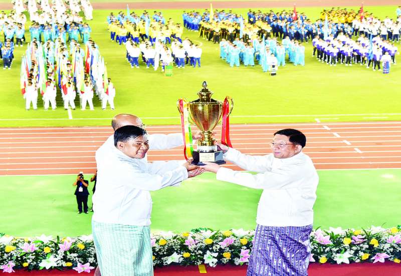 ၂ဝ၂၄ ခုနှစ်၊ ပဉ္စမအကြိမ်မြောက် အမျိုးသားအားကစားပွဲတော် ပိတ်ပွဲအခမ်းအနားကို ယနေ့ညနေပိုင်းတွင် နေပြည်တော်ရှိ ဝဏ္ဏသိဒ္ဓိအားကစားကွင်း၌ ကျင်းပပြုလုပ်ရာ နိုင်ငံတော်စီမံအုပ်ချုပ်ရေးကောင်စီဥက္ကဋ္ဌ နိုင်ငံတော်ဝန်ကြီးချုပ် ဗိုလ်ချုပ်မှူးကြီး မင်းအောင်လှိုင် တက်ရောက်ချီးမြှင့်ပြီး ဂုဏ်ပြုအမှာစကားပြောကြားသည်။