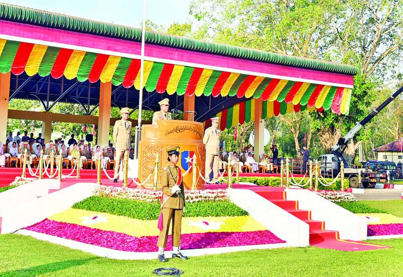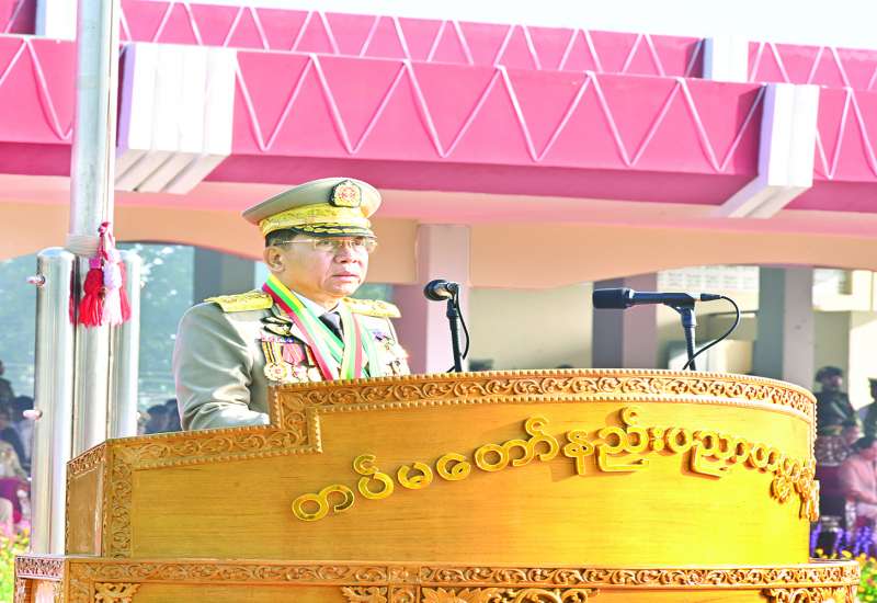 တပ်မတော်၏ အမျိုးသမီးစစ်မှုထမ်းများ၏ အခန်းကဏ္ဍကို အားသစ်လောင်းမည့် ဘွဲ့ရအမျိုးသမီးဗိုလ်လောင်းသင်တန်း အမှတ်စဉ်(၁၁) သင်တန်းဆင်းဂုဏ်ပြုစစ်ရေးပြအခမ်းအနားကို ယနေ့နံနက်ပိုင်းတွင် ရန်ကုန်မြို့ရှိတပ်မတော်(ကြည်း) ဗိုလ်သင်တန်းကျောင်း(မှော်ဘီ)စစ်ရေးပြကွင်း၌ ကျင်းပပြုလုပ်ရာ နိုင်ငံတော်စီမံအုပ်ချုပ်ရေးကောင်စီဥက္ကဋ္ဌ တပ်မတော်ကာကွယ်ရေးဦးစီးချုပ် ဗိုလ်ချုပ်မှူးကြီးသတိုးမဟာသရေစည်သူ သတိုးသီရိသုဓမ္မ မင်းအောင်လှိုင် တက်ရောက်မိန့်ခွန်း ပြောကြားသည်။ အဆိုပါအခမ်းအနားသို့ နိုင်ငံတော်စီမံအုပ်ချုပ်ရေးကောင်စီဥက္ကဋ္ဌ တပ်မတော်ကာကွယ်ရေးဦးစီးချုပ်နှင့်အတူ ဇနီးဒေါ်ကြူကြူလှ၊ ကာကွယ်ရေးဦးစီးချုပ်(ရေ) ဗိုလ်ချုပ်ကြီး ဇေယျကျော်ထင် ထိန်ဝင်းနှင့်ဇနီး၊ ကာကွယ်ရေးဦးစီးချုပ်(လေ)ဗိုလ်ချုပ်ကြီး ဇေယျကျော်ထင် စည်သူထွန်းအောင်နှင့်ဇနီး၊ ကာကွယ်ရေးဦးစီးချုပ်ရုံးမှ အဆင့်မြင့်တပ်မတော်အရာရှိကြီးများနှင့် ဇနီးများ၊ ပြည်ထောင်စုဝန်ကြီးများနှင့် ဇနီးများ၊ ရန်ကုန်တိုင်းဒေသကြီးဝန်ကြီးချုပ်နှင့် ဇနီး၊ ရန်ကုန်တိုင်းစစ်ဌာနချုပ်တိုင်းမှူး၊ တပ်မတော်(ကြည်း) ဗိုလ်သင်တန်းကျောင်း(မှော်ဘီ)ကျောင်းအုပ်ကြီးနှင့် မှော်ဘီတပ်နယ်မှ တာဝန်ရှိသူများ၊ ကျောင်းဆင်းဗိုလ်လောင်းများ၏ မိဘဆွေမျိုးများနှင့် ဖိတ်ကြားထားသည့် ဧည့်သည့်တော်များ တက်ရောက်ကြသည်။