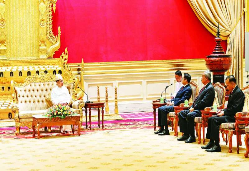 နိုင်ငံတော်စီမံအုပ်ချုပ်ရေးကောင်စီဥက္ကဋ္ဌ နိုင်ငံတော်ဝန်ကြီးချုပ် ဗိုလ်ချုပ်မှူးကြီးမင်းအောင်လှိုင်သည် ရုရှားဖက်ဒရေးရှင်းနိုင်ငံ၊ ကာလ်မီးကီယာပြည်နယ်အကြီးအကဲ H.E. Mr. Batu KHASIKOV ဦးဆောင်သော ကိုယ်စားလှယ်အဖွဲ့အား ယနေ့နံနက်ပိုင်းတွင် နေပြည်တော်ရှိ နိုင်ငံတော်စီမံအုပ်ချုပ်ရေးကောင်စီဥက္ကဋ္ဌရုံး သံတမန်ဆောင်ဧည့်ခန်းမ၌ လက်ခံတွေ့ဆုံသည်။