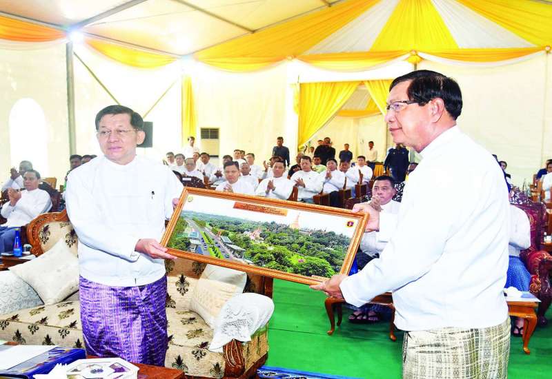 တပ်မတော်ချည်မျှင်နှင့်အထည်စက်ရုံ (မိတ္ထီလာ) ၂/၈၀ ချည်ချောစက်ရုံခွဲ ဖွင့်ပွဲအခမ်းအနားကို ယနေ့နံနက်ပိုင်းတွင် ကျင်းပပြုလုပ်ရာ နိုင်ငံတော်စီမံအုပ်ချုပ်ရေးကောင်စီဥက္ကဋ္ဌ တပ်မတော်ကာကွယ်ရေးဦးစီးချုပ် ဗိုလ်ချုပ်မှူးကြီးမင်းအောင်လှိုင် တက်ရောက်ချီးမြှင့်ဖွင့်လှစ်ပေးသည်။