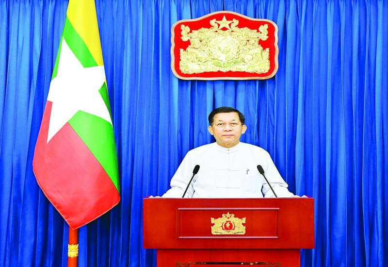 ပြည်ထောင်စုအစိုးရအဖွဲ့အစည်းအဝေးကို ယနေ့မွန်းလွဲပိုင်းတွင် နေပြည်တော်ရှိ နိုင်ငံတော်စီမံအုပ်ချုပ်ရေးကောင်စီဥက္ကဋ္ဌရုံး အစည်းအဝေးခန်းမ၌ ကျင်းပရာ နိုင်ငံတော်စီမံအုပ်ချုပ်ရေးကောင်စီဥက္ကဋ္ဌ နိုင်ငံတော်ဝန်ကြီးချုပ် ဗိုလ်ချုပ်မှူးကြီး မင်းအောင်လှိုင် တက်ရောက်အမှာစကားပြောကြားသည်။