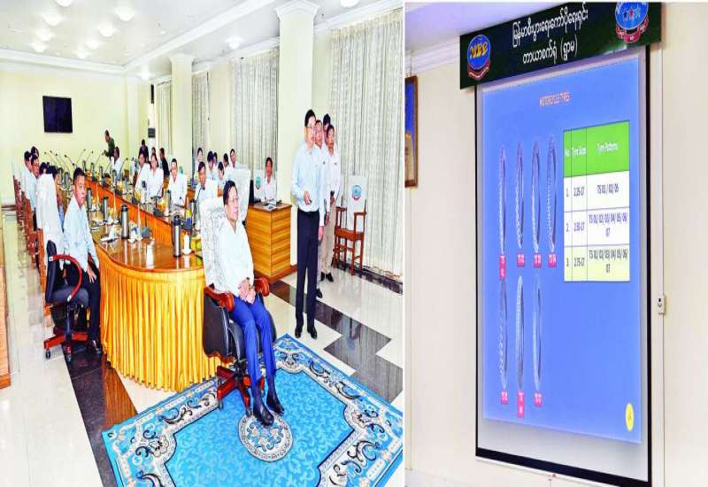 ရန်ကုန်မြို့ပတ်ရထားလမ်းပိုင်းတွင် ခေတ်မီ Diesel Electric Multiple Unit (DEMU) ရထားတွဲဆိုင်းအသစ်များဖြင့် စတင်ပြေးဆွဲခြင်း ဖွင့်ပွဲအခမ်းအနားကို ယနေ့နံနက်ပိုင်းတွင် ရန်ကုန်တိုင်းဒေသကြီး၊ မင်္ဂလာတောင်ညွန့်မြို့နယ်ရှိ၊ ရန်ကုန်ဘူတာကြီး၌ကျင်းပပြုလုပ်ရာ နိုင်ငံတော်စီမံအုပ်ချုပ်ရေးကောင်စီဥက္ကဋ္ဌ နိုင်ငံတော်ဝန်ကြီးချုပ် ဗိုလ်ချုပ်မှူးကြီး မင်းအောင်လှိုင် တက်ရောက်ချီးမြှင့်ပြီး အမှာစကားပြောကြားသည်။
