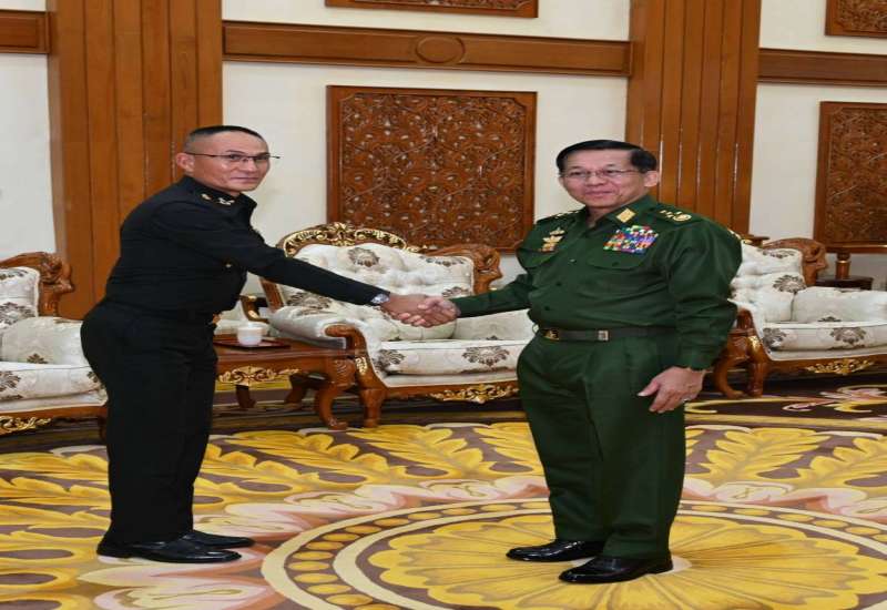 နိုင်ငံတော်စီမံအုပ်ချုပ်ရေးကောင်စီဥက္ကဋ္ဌ တပ်မတော်ကာကွယ်ရေးဦးစီးချုပ် ဗိုလ်ချုပ်မှူးကြီး မင်းအောင်လှိုင်သည် ထိုင်းဘုရင့်တပ်မတော်၊ ပူးပေါင်းစစ်ဆင်ရေး ညွှန်ကြားရေးမှူး Lieutenant General Jakkapong Janpengpen ဦးဆောင်သည့် ကိုယ်စားလှယ်အဖွဲ့အား ယနေ့နံနက်ပိုင်းတွင် နေပြည်တော်ရှိ ဘုရင့်နောင်ရိပ်သာ ဧည့်ခန်းမဆောင်၌ လက်ခံတွေ့ဆုံသည်။