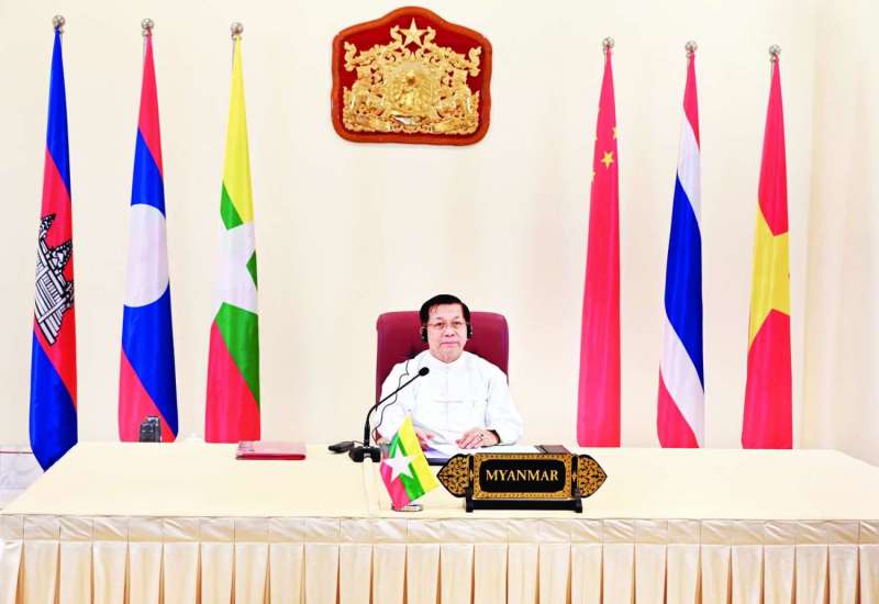 (၄) ကြိမ်မြောက် မဲခေါင် - လန်ချန်း ပူးပေါင်းဆောင်ရွက်မှု နိုင်ငံ့ခေါင်းဆောင်များ အစည်းအဝေးကို ယနေ့မွန်းလွဲပိုင်းတွင် ကျင်းပပြုလုပ်ရာ ပြည်ထောင်စုသမ္မတ မြန်မာနိုင်ငံတော်၊ နိုင်ငံတော်စီမံအုပ်ချုပ်ရေးကောင်စီဥက္ကဋ္ဌ နိုင်ငံတော်ဝန်ကြီးချုပ် ဗိုလ်ချုပ်မှူးကြီး မင်းအောင်လှိုင် ဗီဒီယိုကွန်ဖရင့်စနစ်ဖြင့် ပါဝင်တက်ရောက်ဆွေးနွေးသည်။