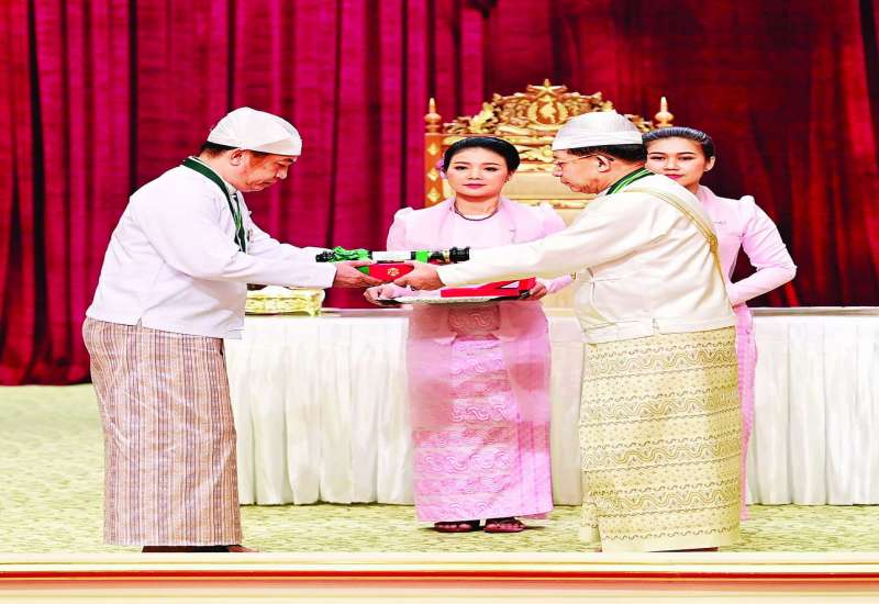 (၇၆)နှစ်မြောက်လွတ်လပ်ရေးနေ့အထိမ်းအမှတ် ဂုဏ်ထူးဆောင်ဘွဲ့များ ချီးမြှင့်အပ်နှင်းခြင်းအခမ်းအနားကို နိုင်ငံတော်စီမံအုပ်ချုပ်ရေးကောင်စီဥက္ကဋ္ဌရုံး သဘင်ဆောင်၌ ယနေ့နံနက်ပိုင်းတွင်ကျင်းပရာ နိုင်ငံတော်စီမံအုပ်ချုပ်ရေးကောင်စီဥက္ကဋ္ဌ နိုင်ငံတော်ဝန်ကြီးချုပ် ဗိုလ်ချုပ်မှူးကြီး သတိုးမဟာသရေစည်သူ သတိုးသီရိသုဓမ္မမင်းအောင်လှိုင် တက်ရောက်အမှာစကားပြောကြားပြီး ဂုဏ်ထူးဆောင်ဘွဲ့များ ချီးမြှင့်အပ်နှင်းသည်။