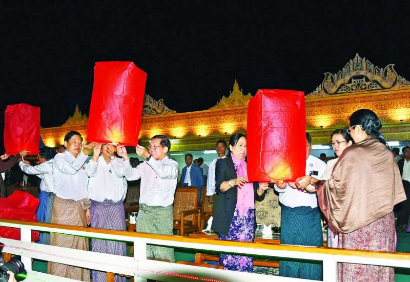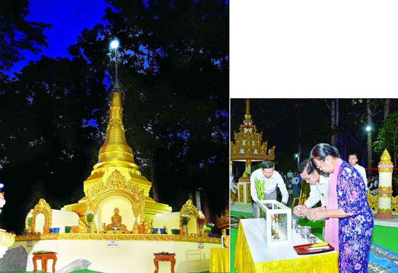 ပြည်ထောင်စုနယ်မြေ နေပြည်တော် ဒက္ခိဏသီရိမြို့နယ်ရှိ မာရဝိဇယဗုဒ္ဓရုပ်ပွားတော်မြတ်ကြီး တန်ဆောင်တိုင်မီးထွန်းပွဲတော် မီးပုံးပျံလွှတ်တင်ပူဇော်ခြင်းအခမ်းအနားကို နိုဝင်ဘာ ၂၅ ရက်မှစတင်၍ ကျင်းပပြုလုပ်လျက်ရှိပြီး ယနေ့တန်ဆောင်မုန်းလပြည့်နေ့ ညနေပိုင်းတွင် မာရဝိဇယဗုဒ္ဓဥယျာဉ်တော်အတွင်း၌ ဆက်လက်ကျင်းပပြုလုပ်ရာ နိုင်ငံတော်စီမံအုပ်ချုပ်ရေးကောင်စီဥက္ကဋ္ဌ နိုင်ငံတော်ဝန်ကြီးချုပ် ဗိုလ်ချုပ်မှူးကြီး မင်းအောင်လှိုင်နှင့် ဇနီး ဒေါ်ကြူကြူလှတို့ တက်ရောက်ကြည့်ရှုအားပေးကြသည်။
