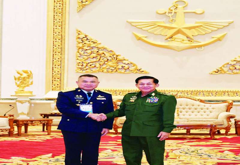 နိုင်ငံတော်စီမံအုပ်ချုပ်ရေးကောင်စီဥက္ကဋ္ဌ တပ်မတော်ကာကွယ်ရေးဦးစီးချုပ် ဗိုလ်ချုပ်မှူးကြီး မင်းအောင်လှိုင်သည် ထိုင်းဘုရင့်လေတပ်ဦးစီးချုပ် Air Chief Marshal Punpakdee Pattanakul ဦးဆောင်သည့် ကိုယ်စားလှယ်အဖွဲ့အား ယနေ့နံနက်ပိုင်းတွင် နေပြည်တော်ရှိ ဇေယျာသီရိဗိမာန် ဧည့်ခန်းမဆောင်၌ လက်ခံတွေ့ဆုံသည်။
