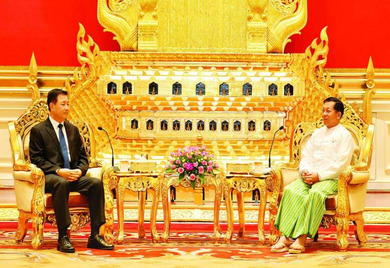 နိုင်ငံတော်စီမံအုပ်ချုပ်ရေးကောင်စီဥက္ကဋ္ဌ နိုင်ငံတော်ဝန်ကြီးချုပ် ဗိုလ်ချုပ်မှူးကြီး မင်းအောင်လှိုင်သည် တရုတ်ပြည်သူ့သမ္မတနိုင်ငံ ကွန်မြူနစ်ပါတီဗဟိုကော်မတီ၏ အတွင်းရေး မှူးချုပ်ရုံး အဖွဲ့ဝင်၊ နိုင်ငံတော်ကောင်စီဝင်နှင့် ပြည်သူ့လုံခြုံရေးဝန်ကြီး H.E. Mr. Wang Xiaohong ဦးဆောင်သော ကိုယ်စားလှယ်အဖွဲ့ကို ယနေ့နံနက်ပိုင်းတွင် နေပြည်တော်ရှိ နိုင်ငံတော်စီမံ အုပ်ချုပ်ရေးကောင်စီ ဥက္ကဋ္ဌရုံး သံတမန်ဆောင် ဧည့်ခန်းမ၌ လက်ခံတွေ့ဆုံသည်။