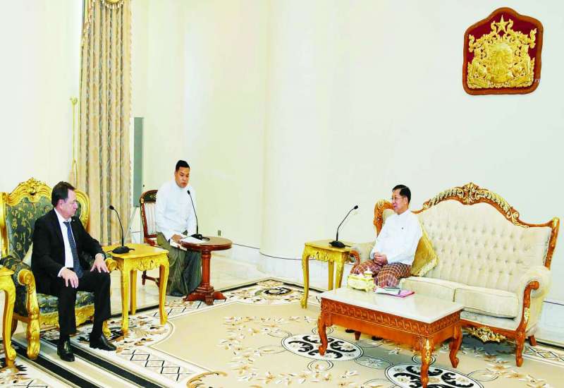 နိုင်ငံတော်စီမံအုပ်ချုပ်ရေးကောင်စီဥက္ကဋ္ဌ နိုင်ငံတော်ဝန်ကြီးချုပ် ဗိုလ်ချုပ်မှူးကြီး မင်းအောင်လှိုင် ထံ ရုရှားဖက်ဒရေးရှင်းနိုင်ငံ၊ ရော့စ်ကွန်ဂရက်ရင်းနှီးမြှုပ်နှံမှုရန်ပုံငွေအဖွဲ့မှ အမှုဆောင်အရာရှိချုပ် Mr. Alexander Sergeevich SHATIROV ဦးဆောင်သည့် ကိုယ်စားလှယ်အဖွဲ့က ယနေ့မွန်းလွဲပိုင်းတွင် နေပြည်တော်ရှိ နိုင်ငံတော်စီမံအုပ်ချုပ်ရေးကောင်စီဥက္ကဋ္ဌရုံး ဧည့်ခန်းမ၌ လာရောက်ဂါရဝပြုတွေ့ဆုံသည်။