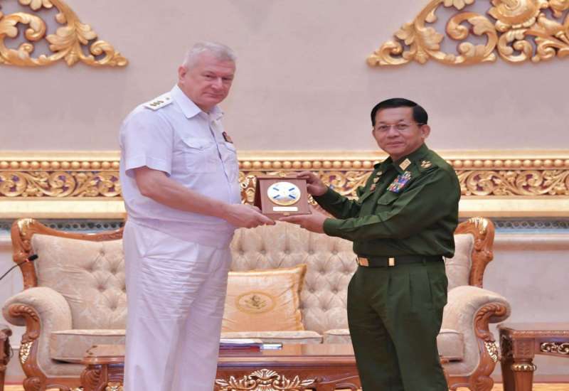 နိုင်ငံတော်စီမံအုပ်ချုပ်ရေးကောင်စီ ဥက္ကဋ္ဌ တပ်မတော်ကာကွယ်ရေးဦးစီးချုပ် ဗိုလ်ချုပ်မှူးကြီး မင်းအောင်လှိုင် သည် ရုရှားဖက်ဒရေးရှင်းနိုင်ငံ ရေတပ်ဦးစီးချုပ် Admiral Nikolai A.EVMENOV ဦးဆောင်သောကိုယ်စားလှယ်အဖွဲ့အား ယနေ့နံနက်ပိုင်းတွင် နေပြည်တော်ရှိ ဇေယျာသီရိဗိမာန် ဧည့်ခန်းမဆောင်၌ လက်ခံတွေ့ဆုံသည်။