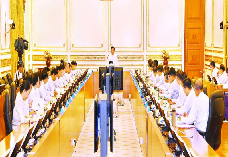 ပြည်ထောင်စုအစိုးရအဖွဲ့အစည်းအဝေး အမှတ်စဉ် (၆/၂၀၂၃) ကို ယနေ့နံနက်ပိုင်းတွင် နေပြည်တော်ရှိ နိုင်ငံတော်စီမံအုပ်ချုပ်ရေးကောင်စီဥက္ကဋ္ဌရုံး အစည်းအဝေးခန်းမ၌ကျင်းပရာ နိုင်ငံတော်စီမံအုပ်ချုပ်ရေးကောင်စီဥက္ကဋ္ဌ နိုင်ငံတော်ဝန်ကြီးချုပ် ဗိုလ်ချုပ်မှူးကြီး မင်းအောင်လှိုင် တက်ရောက်အမှာစကားပြောကြားသည်။