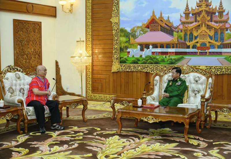 နိုင်ငံတော်စီမံအုပ်ချုပ်ရေးကောင်စီဥက္ကဋ္ဌ တပ်မတော်ကာကွယ်ရေးဦးစီးချုပ် ဗိုလ်ချုပ်မှူးကြီး မင်းအောင်လှိုင်သည် ကရင်တိုင်းရင်းသားခေါင်းဆောင် စောမူတူးစေးဖိုး ဦးဆောင်သည့်အဖွဲ့အား ယနေ့နံနက်ပိုင်းတွင် နေပြည်တော်ရှိ ဘုရင့်နောင်ရိပ်သာ၊ ဧည့်ခန်းမဆောင်၌ လက်ခံတွေ့ဆုံပြီး ငြိမ်းချမ်းရေးဆိုင်ရာကိစ္စရပ်များ ဆွေးနွေးသည်။