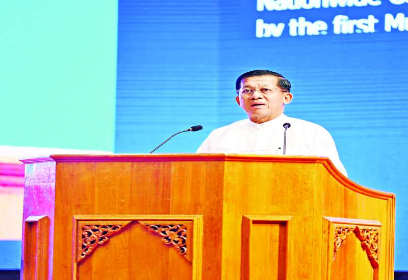 ပြည်ထောင်စုအစိုးရအဖွဲ့အစည်းအဝေး အမှတ်စဉ် (၅/၂၀၂၃)ကို ယနေ့ မွန်းလွဲပိုင်းတွင် နေပြည်တော်ရှိ နိုင်ငံတော်စီမံအုပ်ချုပ်ရေးကောင်စီဥက္ကဋ္ဌရုံး အစည်းအဝေးခန်းမ၌ကျင်းပရာ နိုင်ငံတော်စီမံအုပ်ချုပ်ရေးကောင်စီဥက္ကဋ္ဌ နိုင်ငံတော်ဝန်ကြီးချုပ် ဗိုလ်ချုပ်မှူးကြီး မင်းအောင်လှိုင် တက်ရောက်အမှာစကားပြောကြားသည်။