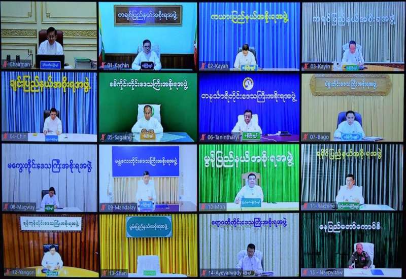 နိုင်ငံတော်စီမံအုပ်ချုပ်ရေးကောင်စီဥက္ကဋ္ဌ နိုင်ငံတော်ဝန်ကြီးချုပ် ဗိုလ်ချုပ်မှူးကြီးမင်းအောင်လှိုင်သည် တိုင်းဒေသကြီးနှင့်ပြည်နယ်ဝန်ကြီးချုပ်များနှင့် ကိုယ်ပိုင်အုပ်ချုပ်ခွင့်ရဒေသနှင့် တိုင်းဥက္ကဋ္ဌများအား ယနေ့မွန်းလွဲပိုင်းတွင် နေပြည်တော်ရှိ နိုင်ငံတော်စီမံအုပ်ချုပ်ရေးကောင်စီဥက္ကဋ္ဌရုံး အစည်းအဝေးခန်းမ၌ တွေ့ဆုံအမှာစကားပြောကြားသည်။