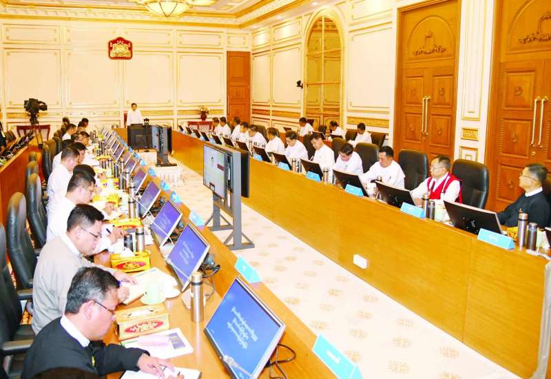 ပြည်ထောင်စုအစိုးရအဖွဲ့အစည်းအဝေး အမှတ်စဉ် (၄/၂၀၂၃) ကို ယနေ့မွန်းလွဲပိုင်းတွင် နေပြည်တော်ရှိ နိုင်ငံတော်စီမံအုပ်ချုပ်ရေးကောင်စီဥက္ကဋ္ဌ ရုံးအစည်းအဝေးခန်းမ၌ကျင်းပရာ နိုင်ငံတော်စီမံအုပ်ချုပ်ရေးကောင်စီဥက္ကဋ္ဌ နိုင်ငံတော်ဝန်ကြီးချုပ် ဗိုလ်ချုပ်မှူးကြီးမင်းအောင်လှိုင် တက်ရောက်အမှာစကားပြောကြားသည်။