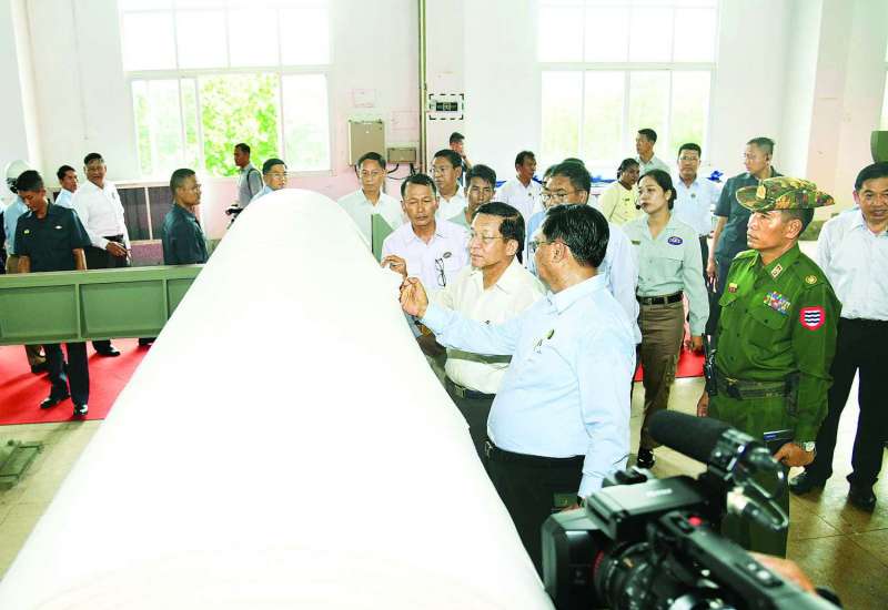 မြန်မာစီးပွားရေးကော်ပိုရေးရှင်း၊ သတင်းစာစက္ကူစက်ရုံ (သာပေါင်း) စတင်ဖွင့်လှစ်လည်ပတ်ခြင်း အခမ်းအနားကို ယနေ့နံနက်ပိုင်းတွင်ကျင်းပပြုလုပ်ရာ နိုင်ငံတော်စီမံအုပ်ချုပ်ရေးကောင်စီဥက္ကဋ္ဌ နိုင်ငံတော်ဝန်ကြီးချုပ် ဗိုလ်ချုပ်မှူးကြီးမင်းအောင်လှိုင် တက်ရောက်ဖွင့်လှစ်ပေးသည်။