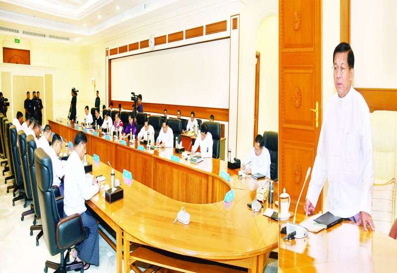 နိုင်ငံတော်စီမံအုပ်ချုပ်ရေးကောင်စီဥက္ကဋ္ဌ နိုင်ငံတော်ဝန်ကြီးချုပ် ဗိုလ်ချုပ်မှူးကြီး မင်းအောင်လှိုင်သည် ပြည်ထောင်စုအဆင့်ပုဂ္ဂိုလ်များနှင့် ပြည်ထောင်စုဝန်ကြီးဌာနများမှ တာဝန်ရှိသူများအား ယနေ့နံနက်ပိုင်းတွင် နေပြည်တော်ရှိ နိုင်ငံတော်စီမံအုပ်ချုပ်ရေးကောင်စီဥက္ကဋ္ဌရုံး ငုရွှေဝါခန်းမ၌တွေ့ဆုံ အမှာစကားပြောကြားသည်။