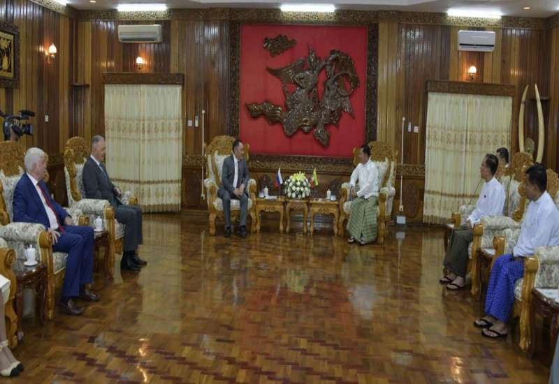 နိုင်ငံတော်စီမံအုပ်ချုပ်ရေးကောင်စီဥက္ကဋ္ဌ နိုင်ငံတော်ဝန်ကြီးချုပ် ဗိုလ်ချုပ်မှူးကြီး မင်းအောင်လှိုင်ထံသို့ ရုရှားဖက်ဒရေးရှင်းနိုင်ငံ ဒူးမားလွှတ်တော် ဒုတိယဥက္ကဋ္ဌ H.E. Mr.Sholban Kara-Ool ဦးဆောင်သည့်အဖွဲ့ဝင်များက ယနေ့ညနေပိုင်းတွင် တောင်ကြီးမြို့ရှိ ပင်လုံရိပ်သာဧည့်ခန်းမဆောင်၌ လာရောက်ဂါရဝပြု တွေ့ဆုံသည်။