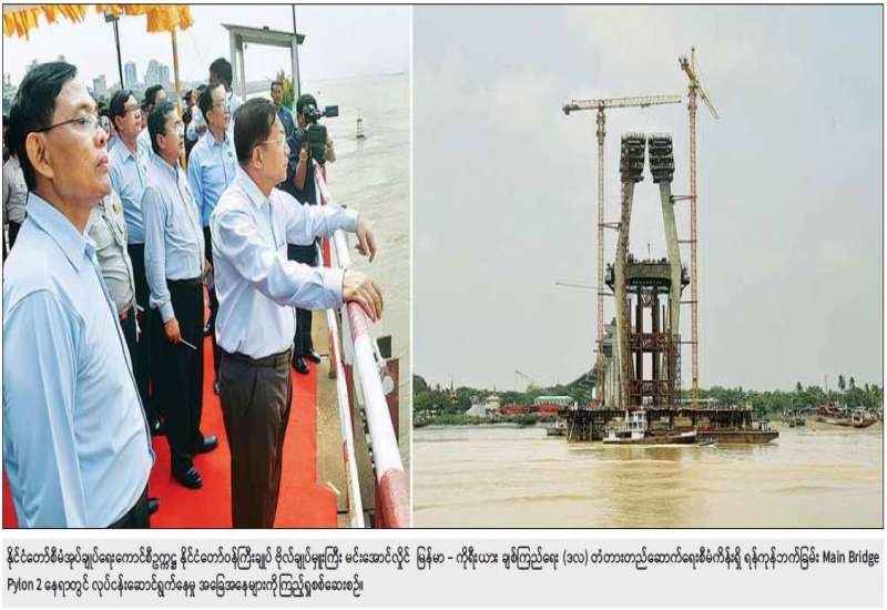 နိုင်ငံတော်စီမံအုပ်ချုပ်ရေးကောင်စီဥက္ကဋ္ဌ နိုင်ငံတော်ဝန်ကြီးချုပ် ဗိုလ်ချုပ်မှူးကြီး မင်းအောင်လှိုင်သည် ခရီးစဉ်တွင်လိုက်ပါလာသည့် အဖွဲ့ဝင်များ၊ ရန်ကုန်တိုင်းဒေသကြီး ဝန်ကြီးချုပ် ဦးစိုးသိန်း၊ ရန်ကုန်တိုင်းစစ်ဌာနချုပ်တိုင်းမှူးနှင့် တာဝန်ရှိသူများလိုက်ပါ၍ ယနေ့နံနက်ပိုင်းတွင် ရန်ကုန်တိုင်းဒေသကြီးအတွင်းရှိ ပဲခူးမြစ်ကူးတံတား (သန်လျင်တံတားအမှတ်-၃) တည်ဆောက်ရေးစီမံကိန်းနှင့် မြန်မာ-ကိုရီးယား ချစ်ကြည်ရေး (ဒလ) တံတားစီမံကိန်း လုပ်ငန်းဆောင်ရွက်ပြီးစီးမှု အခြေအနေများကို သွားရောက်ကြည့်ရှု စစ်ဆေးသည်။