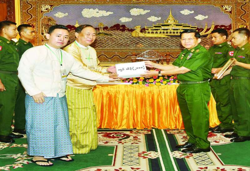 အားကောင်းသော ဆိုင်ကလုန်းမုန်တိုင်း(Severe Cyclonic Storm)“မိုခါ” (MOCHA) ဝင်ရောက်မှုကြောင့် သဘာဝ ဘေးဒဏ်သင့်ခဲ့ရသည့် ဒေသများ၌ ကူညီကယ်ဆယ်ရေးနှင့် ပြန်လည်ထူထောင်ရေးလုပ်ငန်းများ ဆောင်ရွက်ရာတွင် အသုံးပြုနိုင်ရေးအလှူငွေများ ပေးအပ်လှူဒါန်းပွဲကို ယနေ့နံနက်ပိုင်းတွင် ရန်ကုန်တိုင်းစစ်ဌာနချုပ် ကုန်းမြင့်သာရှိ ဇေယျာသီရိဗိမာန် ဧည့်ခန်းဆောင်၌ကျင်းပရာ နိုင်ငံတော်စီမံအုပ်ချုပ်ရေးကောင်စီဥက္ကဋ္ဌ နိုင်ငံတော်ဝန်ကြီးချုပ် ဗိုလ်ချုပ်မှူးကြီးမင်းအောင်လှိုင် တက်ရောက်သည်။