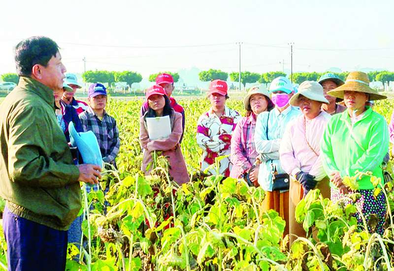 စိုက်ပျိုးရေး၊ မွေးမြူရေးနှင့် ဆည်မြောင်းဝန်ကြီးဌာန ဒုတိယဝန်ကြီး ဒေါက်တာတင်ထွဋ်သည် ယနေ့နံနက်ပိုင်းက စိုက်ပျိုးရေးတက္ကသိုလ်၏ အပင်မျိုးမွေးမြူရေးနှင့် အပင်ဇီဝကမ္မဗေဒနှင့် ဂေဟဗေဒဌာနရှိ ဘွဲ့လွန်ကျောင်းသား ကျောင်းသူများ ဆောင်ရွက်လျက်ရှိသည့် ဆင်းရွှေကြာ (၂) နေကြာမျိုးအား (Recurrent Mass Selection) နည်းလမ်းကို အသုံးပြု၍ မျိုးရွေးချယ်ခြင်းလုပ်ငန်း ဆောင်ရွက်နေမှုများကို သွားရောက်ကြည့်ရှုအားပေးသည်။