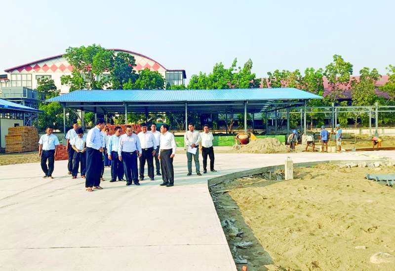 ဆောက်လုပ်ရေးဝန်ကြီးဌာန ဒုတိယဝန်ကြီး ဦးဝင်းဖေသည် တာဝန်ရှိသူများနှင့်အတူ ယနေ့နံနက်ပိုင်းတွင် မန္တလေးတိုင်းဒေသကြီး အောင်မြေသာစံခရိုင်(ခ)အဆင့် စုပေါင်းရုံး သုံးထပ်အဆောက်အအုံ တည်ဆောက်ရေးစီမံကိန်းကို ကြည့်ရှုစစ်ဆေးပြီး အဆောက်အဦအထူးအဖွဲ့(၆)မှ (မြို့ပြ၊ ရေသန့်၊ လျှပ်စစ်) အင်ဂျင်နီယာဝန်ထမ်းများနှင့် တွေ့ဆုံသည်။